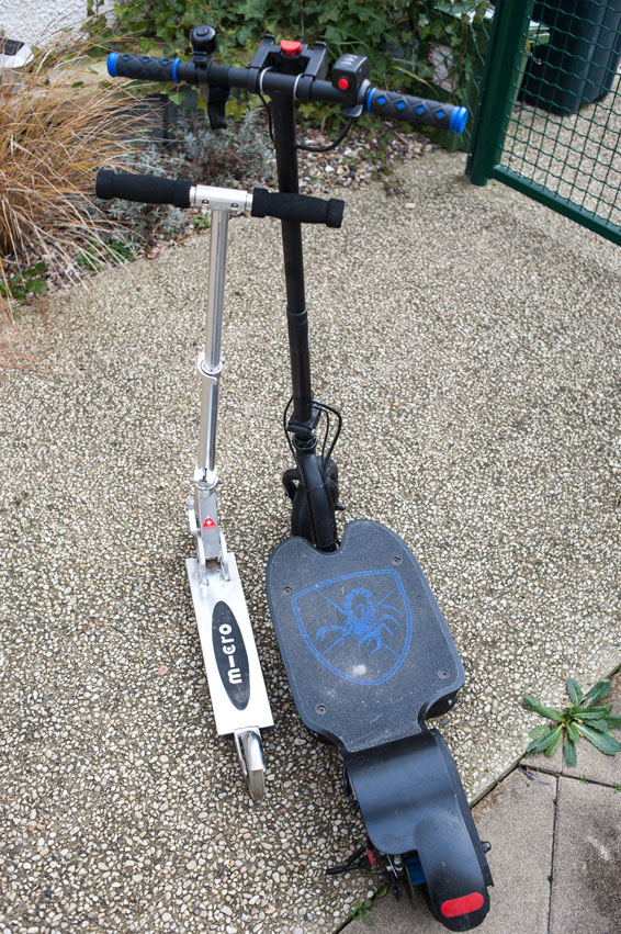 La Scorp’it ressemble à une trottinette qui aurait subi une cure d’hormones de croissance. C’est un géant ! Je me suis amusé à la comparer à une trottinette classique, cela se passe de commentaire !